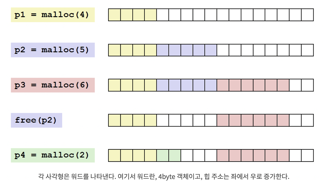 - malloc() 함수로 메모리를 할당받고, 사용이 끝난 메모리는 free()함수로 해제한다.