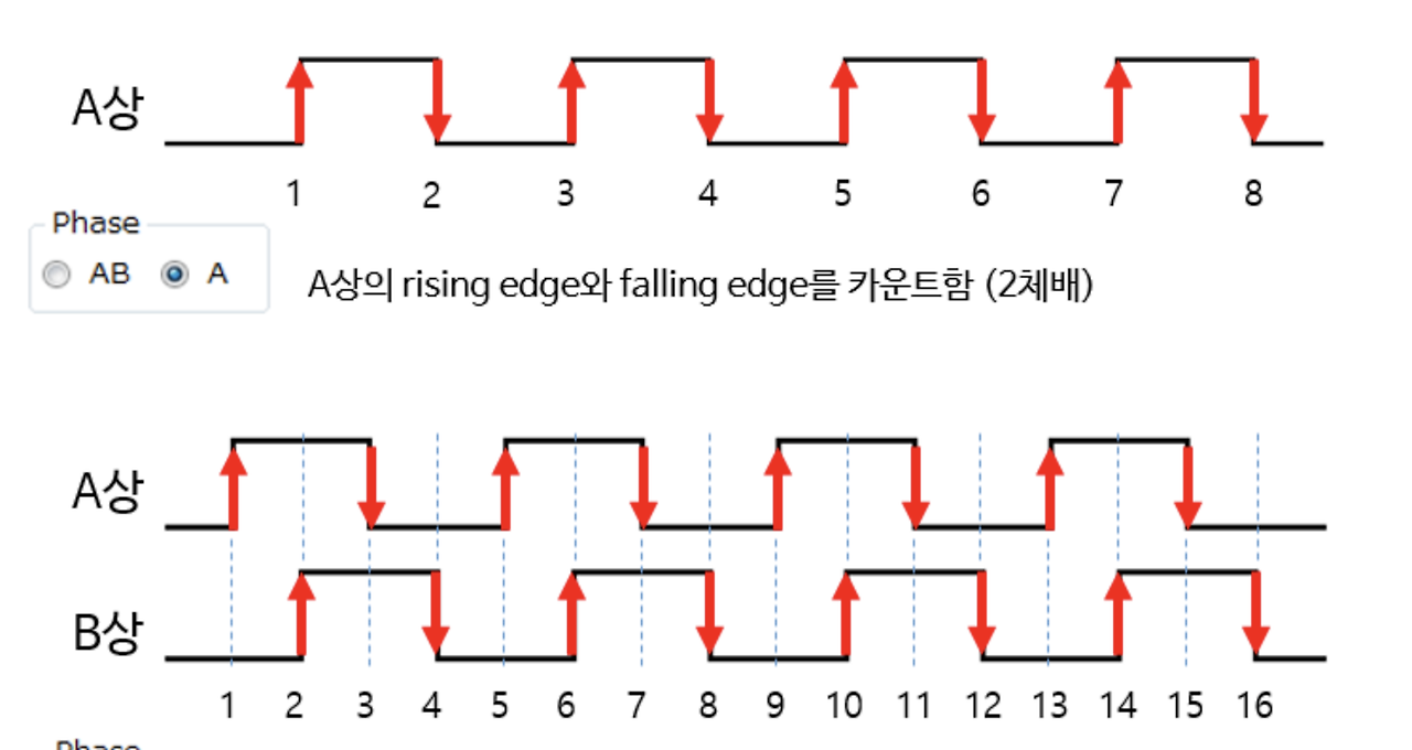 엔코더랑 축의 회전방향, 이동량, 각도를 감지하는 센서로, 이동량에 따라 A상, B상으로 불리는 펄스를 발생시키며, 해당 펄스를 카운트하여 스테이지의 이동속도 (=피사체의 이동속도)를 검출할 수 있습니다.