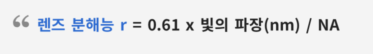 - 렌즈 분해능 계산식 : 0.61 * 파장[um]/NA
