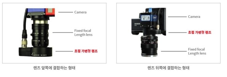 따라서 높이가 다른 제품을 검사 할 때 제품 높이에 따라 포커싱을 조절할 때 및 일정 수준의 줌렌즈로 활용이 필요할 때 액체렌즈를 사용합니다.