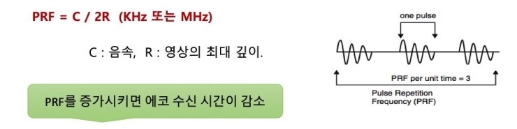 : 초당 발생하는 펄스의 수로 PRF를 증가시키면 에코 수신 시간이 감소하며, 연속파의 주파수와 같이 Hz 단위 사용